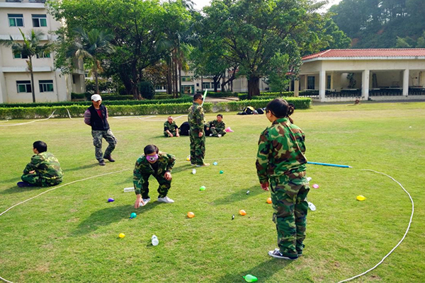 這個(gè)項(xiàng)目是模擬戰(zhàn)場(chǎng),三人一組,分別扮演:司令(不能說話、面朝戰(zhàn)場(chǎng))、參謀長(zhǎng)(背對(duì)戰(zhàn)場(chǎng))、士兵(蒙上眼罩,不能說話)。