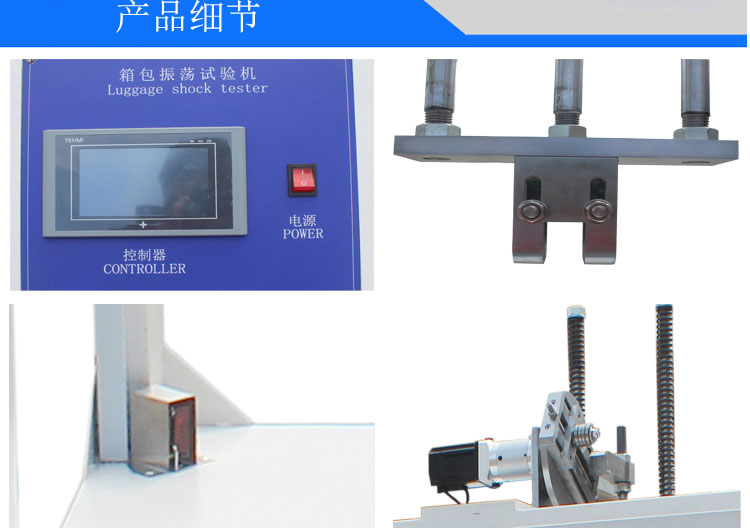 箱包振蕩試驗(yàn)機(jī)用于測試旅行箱提把、車縫線及整體結(jié)構(gòu)的耐震蕩沖擊試驗(yàn).方法是在對(duì)象上裝載規(guī)定的荷重,以每分鐘30次的速度沖擊及4英寸的沖程對(duì)試件做2500次試驗(yàn),試驗(yàn)結(jié)果可作為質(zhì)量改進(jìn)的參考.