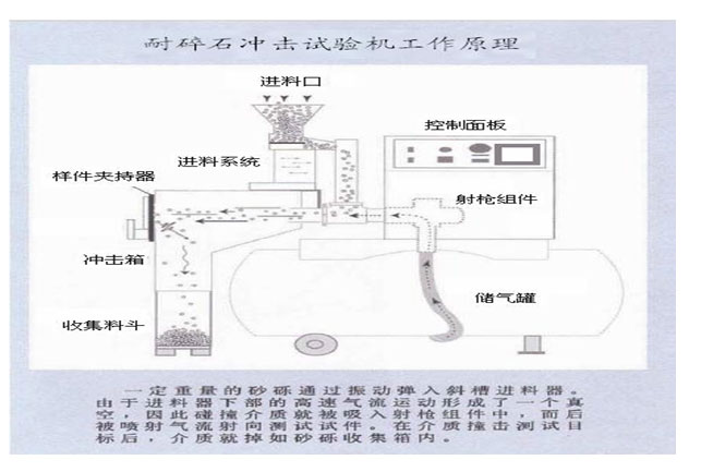 注意:試驗前戴好防護(hù)眼罩和防噪耳機。。 (1)首先連接好儲氣罐和沖擊儀 (2)根據(jù)所做標(biāo)準(zhǔn)選擇沖擊箱(角度可調(diào)沖擊箱和3D沖擊箱),如果選擇角度可調(diào)沖擊箱,則根據(jù)標(biāo)準(zhǔn)要求調(diào)節(jié)沖擊角度(45°、54°或90°) 4工作原理 4.1 工作原理圖