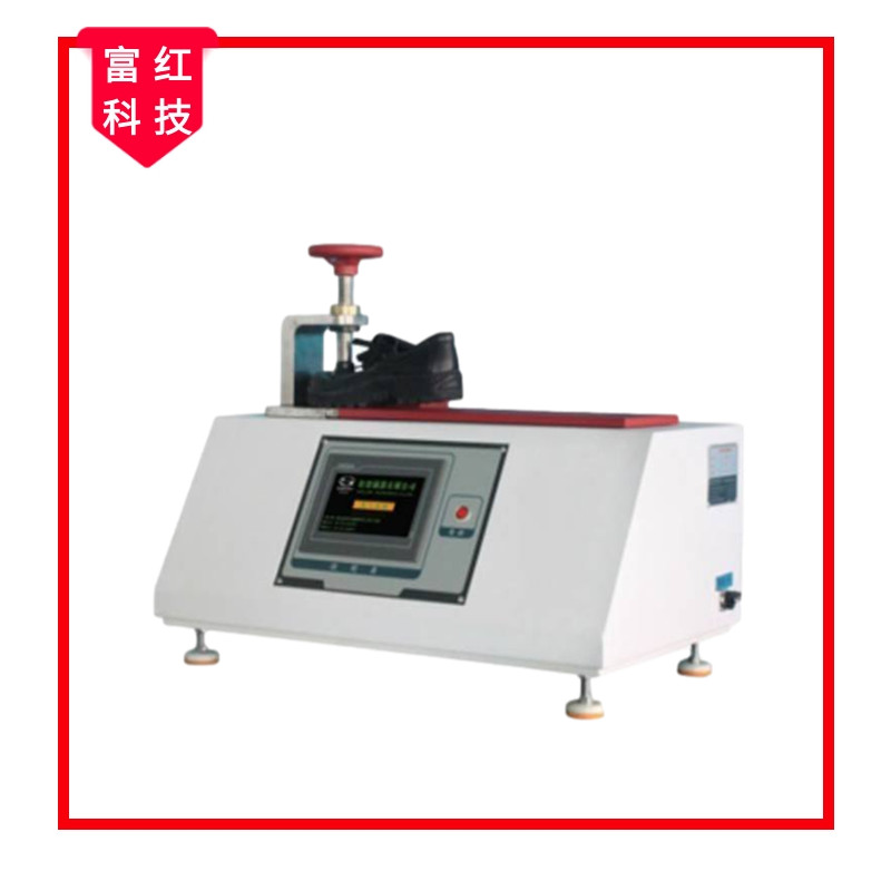本機用于測試成品鞋的耐抗彎性,將夾具夾持鞋的前部(確認(rèn)鞋的前掌1/3處,位于轉(zhuǎn)軸位置),馬達(dá)啟動后帶動皮帶輪,使軸驅(qū)動轉(zhuǎn)板以100mm/min之速度向鞋施加30N的力量進(jìn)行測試。