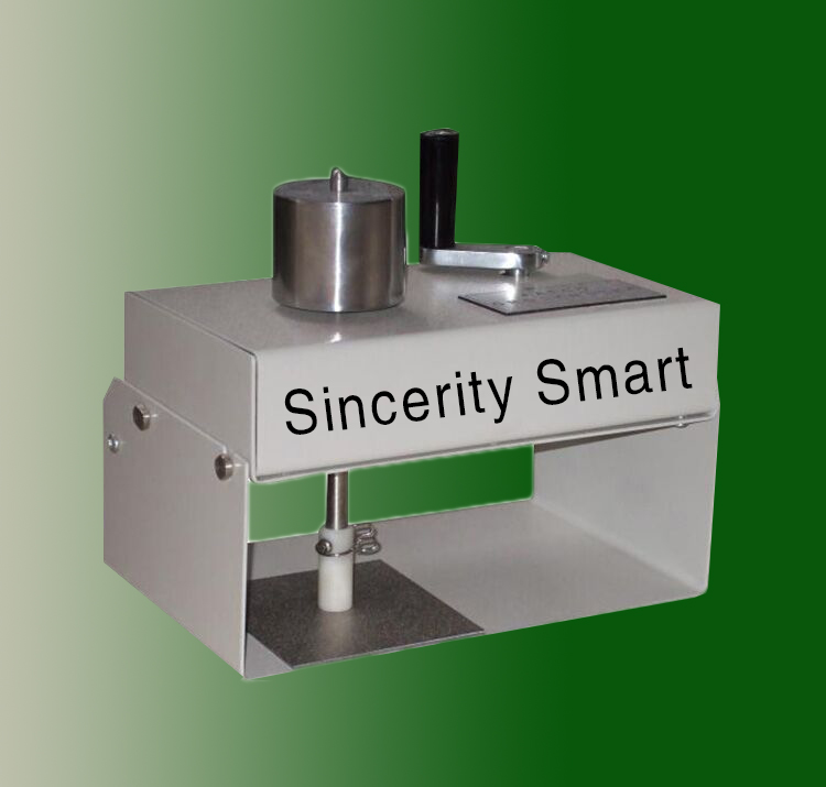 G238E為手動操作儀器,具有一個往復旋轉(zhuǎn)測試頭,主要用于測試織物上較小面積的印花部位。使用標準砝碼,直徑為16mmm的摩擦頭與試樣表面接觸并對其施加11.1N壓力。當操作者沿同一方向轉(zhuǎn)動手柄,摩擦頭先沿順時針方向旋轉(zhuǎn)1.125圈,然后沿逆時針旋轉(zhuǎn)。通過施加壓力和在儀器基座上安裝砂紙來使試樣在試驗過程中保持固定。儀器的上端可沿基座向上傾斜抬起,以便于安裝和卸下試樣。