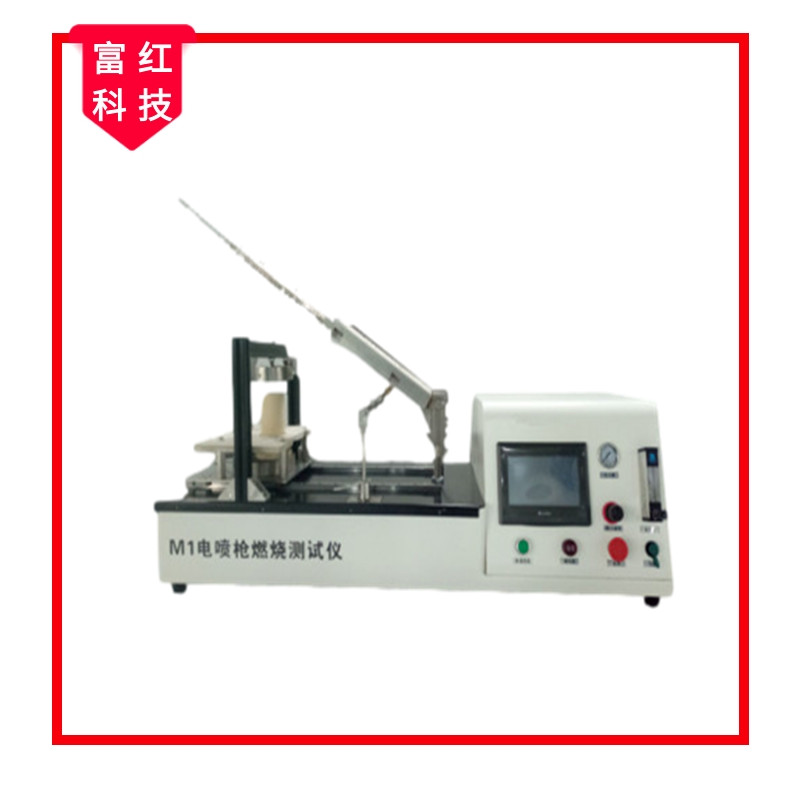 電噴槍M級燃燒測試儀,通過校準(zhǔn)后的熱輻射爐,對試樣進(jìn)行熱輻射,同時(shí)施加定時(shí)的火焰沖擊,進(jìn)而觀測試樣的續(xù)燃、滴落、試樣損毀長度等燃燒性能,進(jìn)行評判試樣是否達(dá)到法國M1級測試要求。