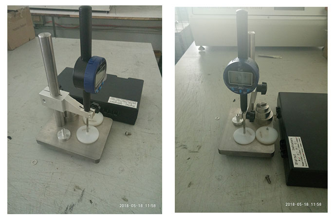 將試樣放置在基準版上,用壓腳對試樣施加壓力,測量接觸試樣的壓腳面積與基準板之間的距離,即為厚度值。